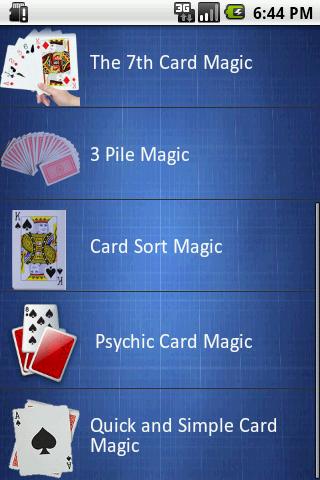 card magic free apk adalah aplikasi android yg khusus mempelajari trik bermain sulap menggunakan kartu Remi. Dalam aplikasi ini menampilkan tutorial berbagai jenis permainan sulap kartu lengkap dengan petunjuk tulisan dan disertai gambar step by step. Ini pasti akan membuat Anda lebih paham dengan trik sulap yang disuguhkan.